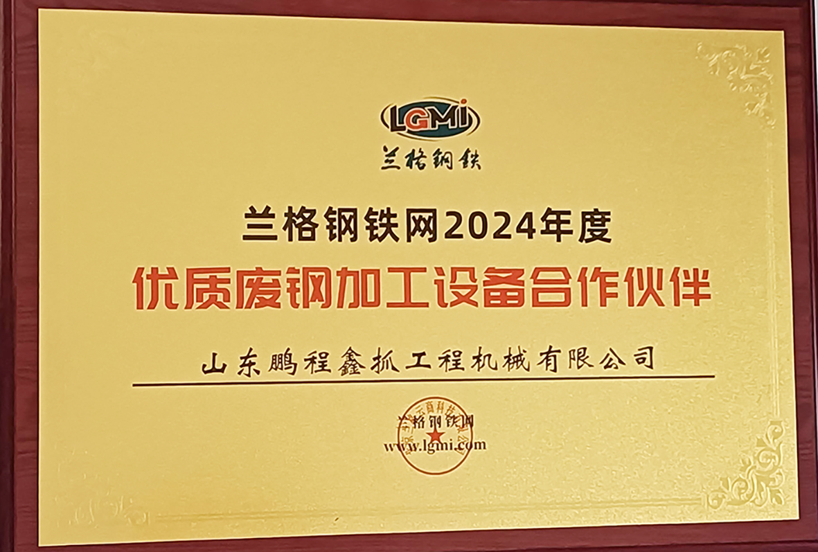 公司荣获2024年度抓钢机优质供应商